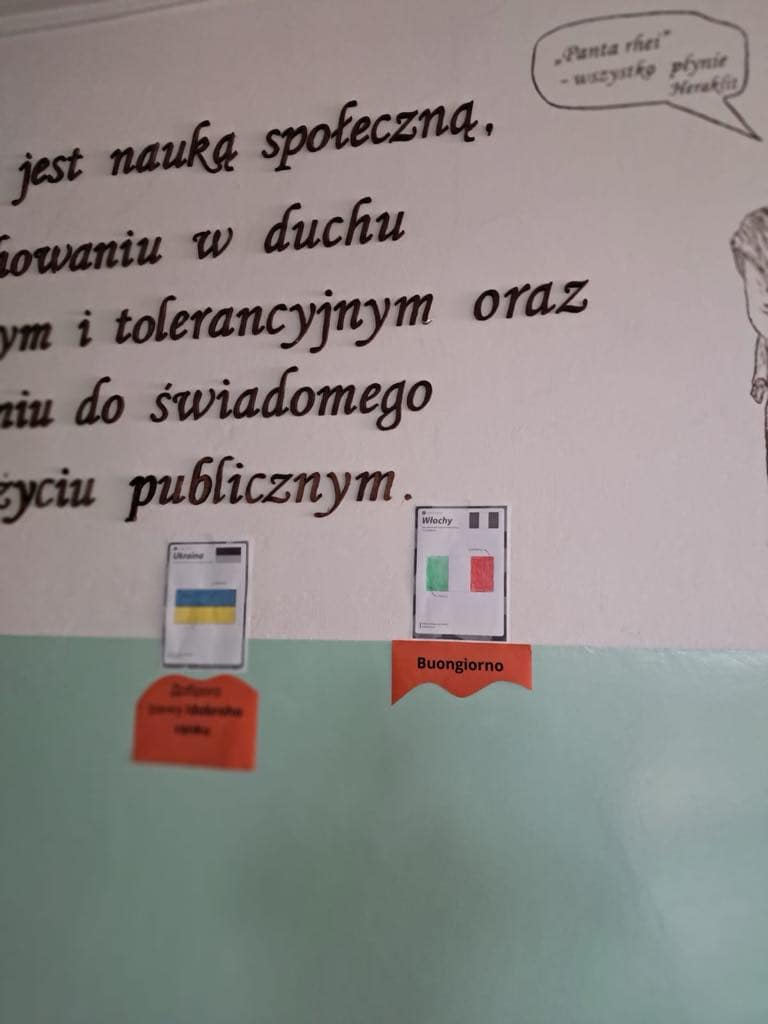 Na drzwiach i ścianach pojawiły się plakaty z hasłami promującymi naukę języków obcych. Uczniowie mogli wziąć udział w Turnieju Wiedzy o Krajach Europejskich. Przy specjalnie przygotowanym stoisku, losowali pytania dotyczące historii, geografii, ustrojów politycznych różnych krajów europejskich. Za każdą dobrą odpowiedź, uczeń otrzymywał słodką nagrodę. Cała impreza miała bardzo radosny wymiar. Została przygotowana i nadzorowana przez nauczycieli języków obcych w naszej szkole.
