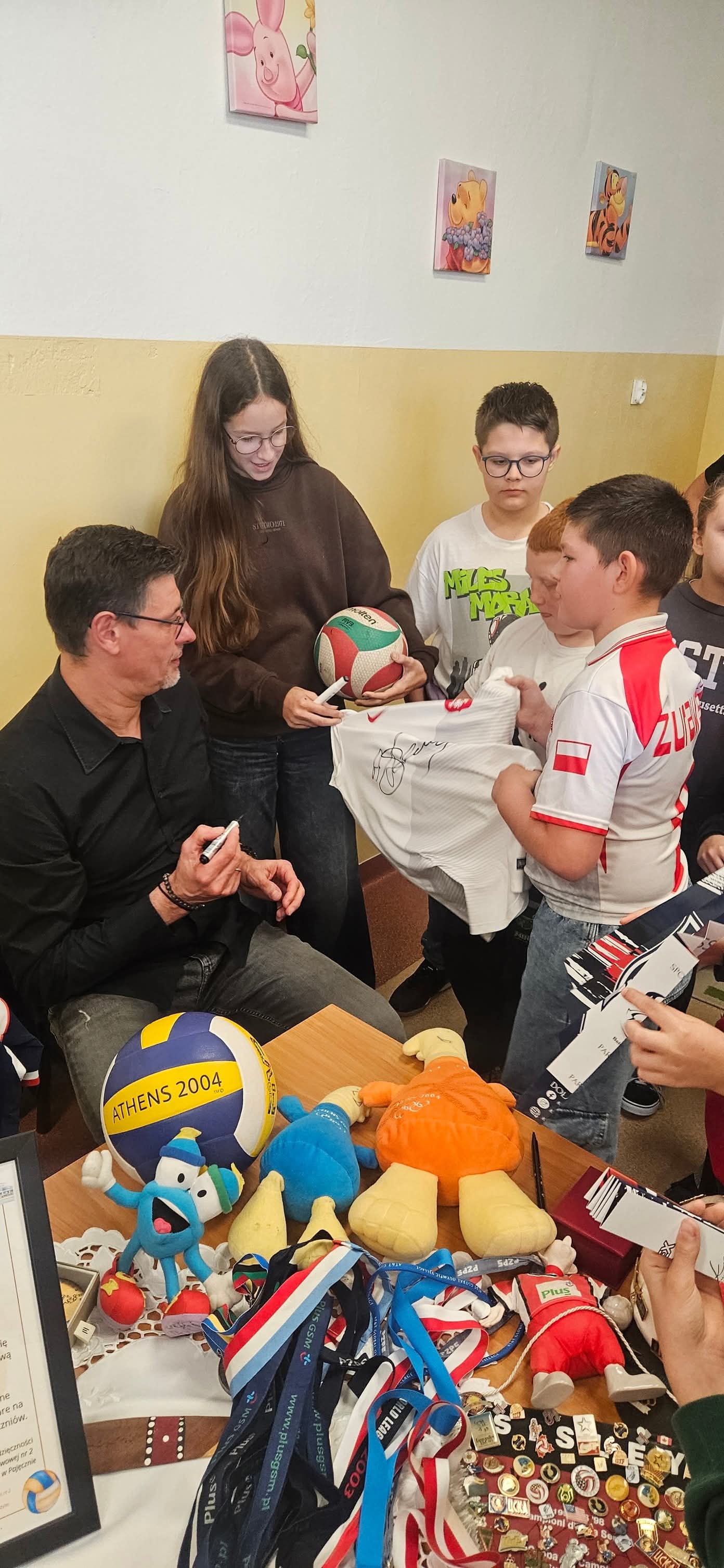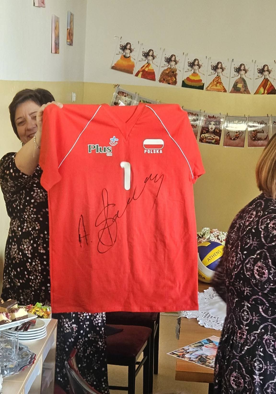 Pan Andrzej z chęcią odpowiadał na pytania uczniów, dzielił się swoimi doświadczeniami, a na zakończenie spotkania przekazał naszej szkole pamiątkową koszulkę, za co serdecznie dziękujemy.