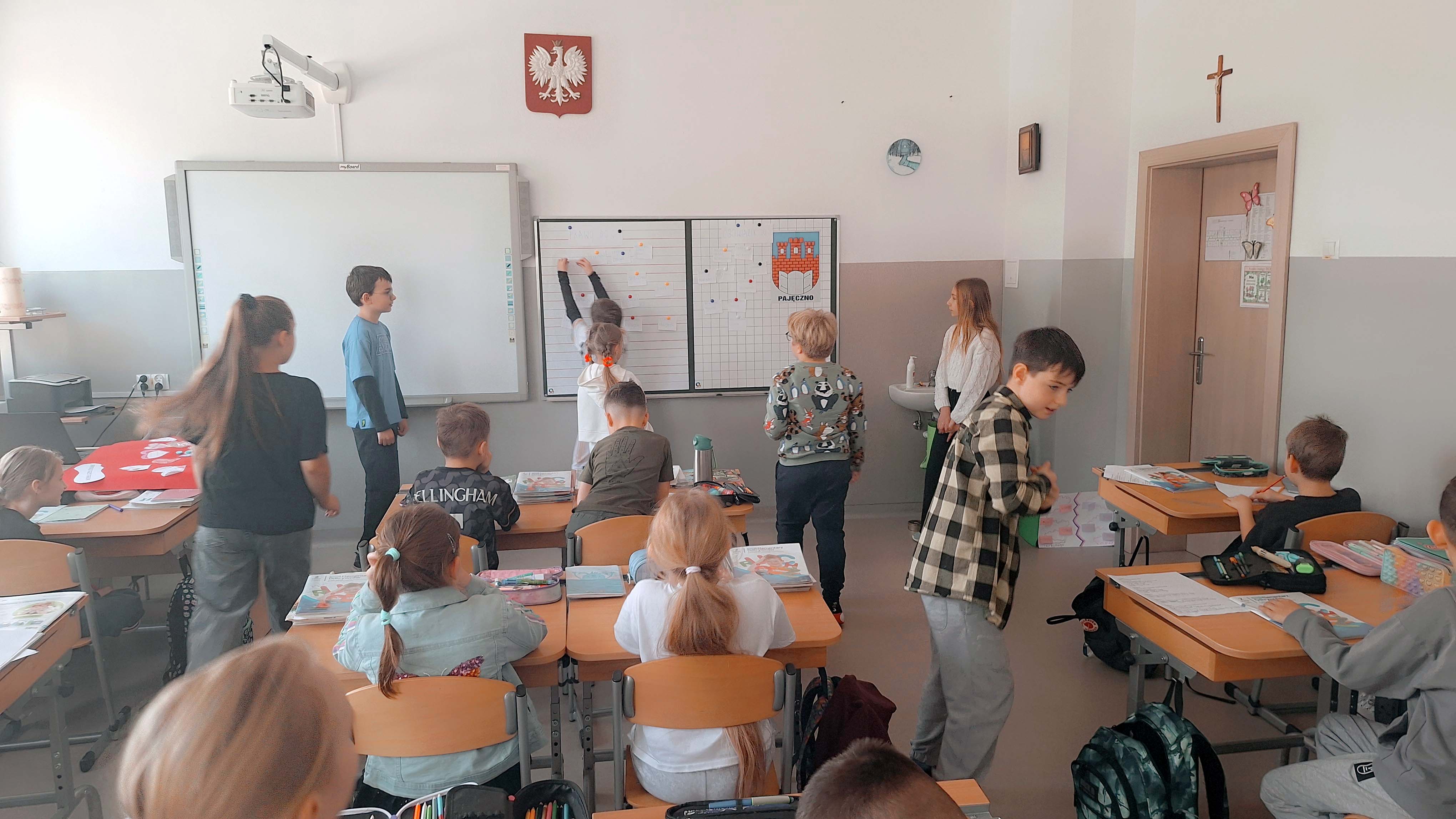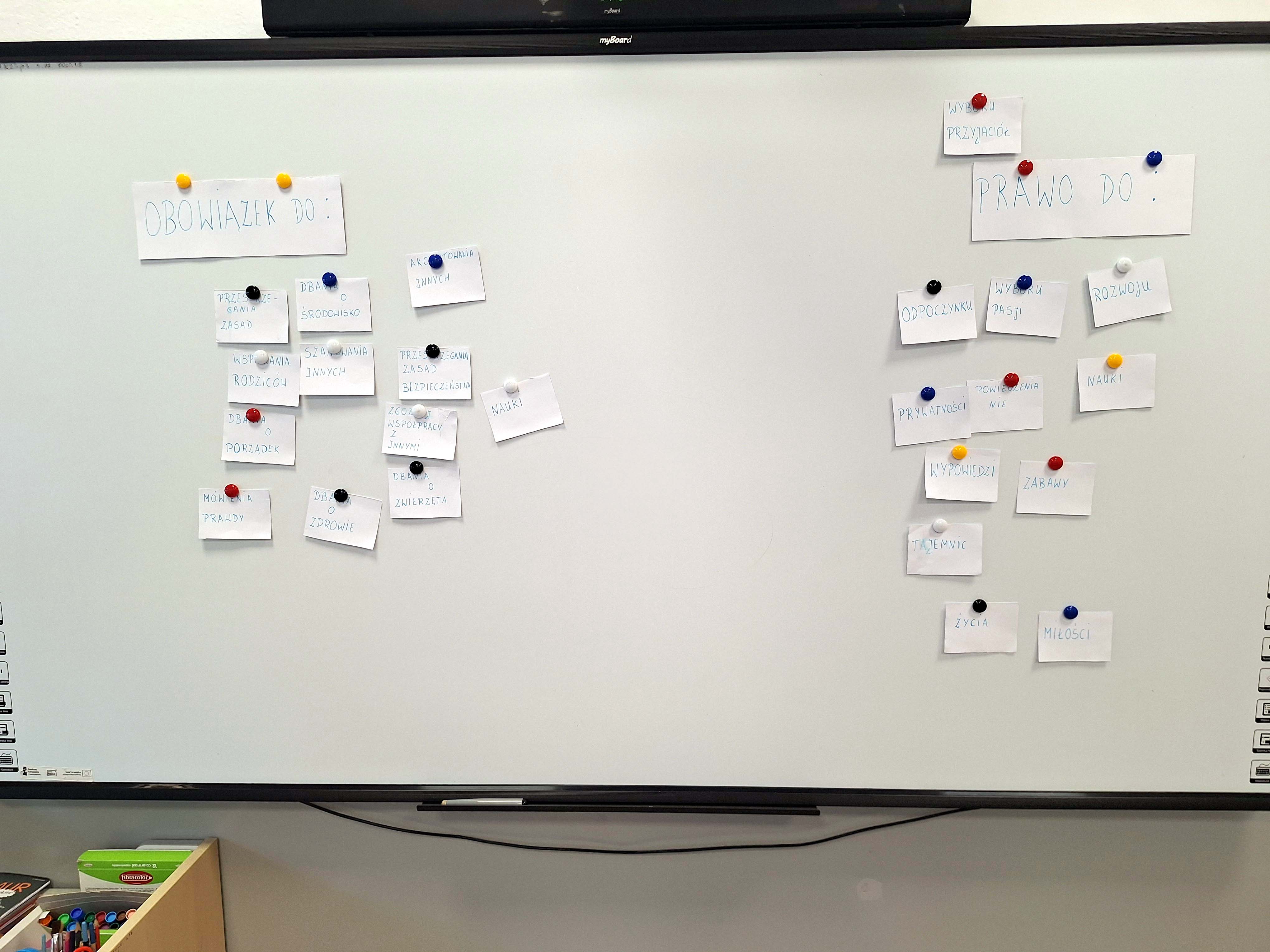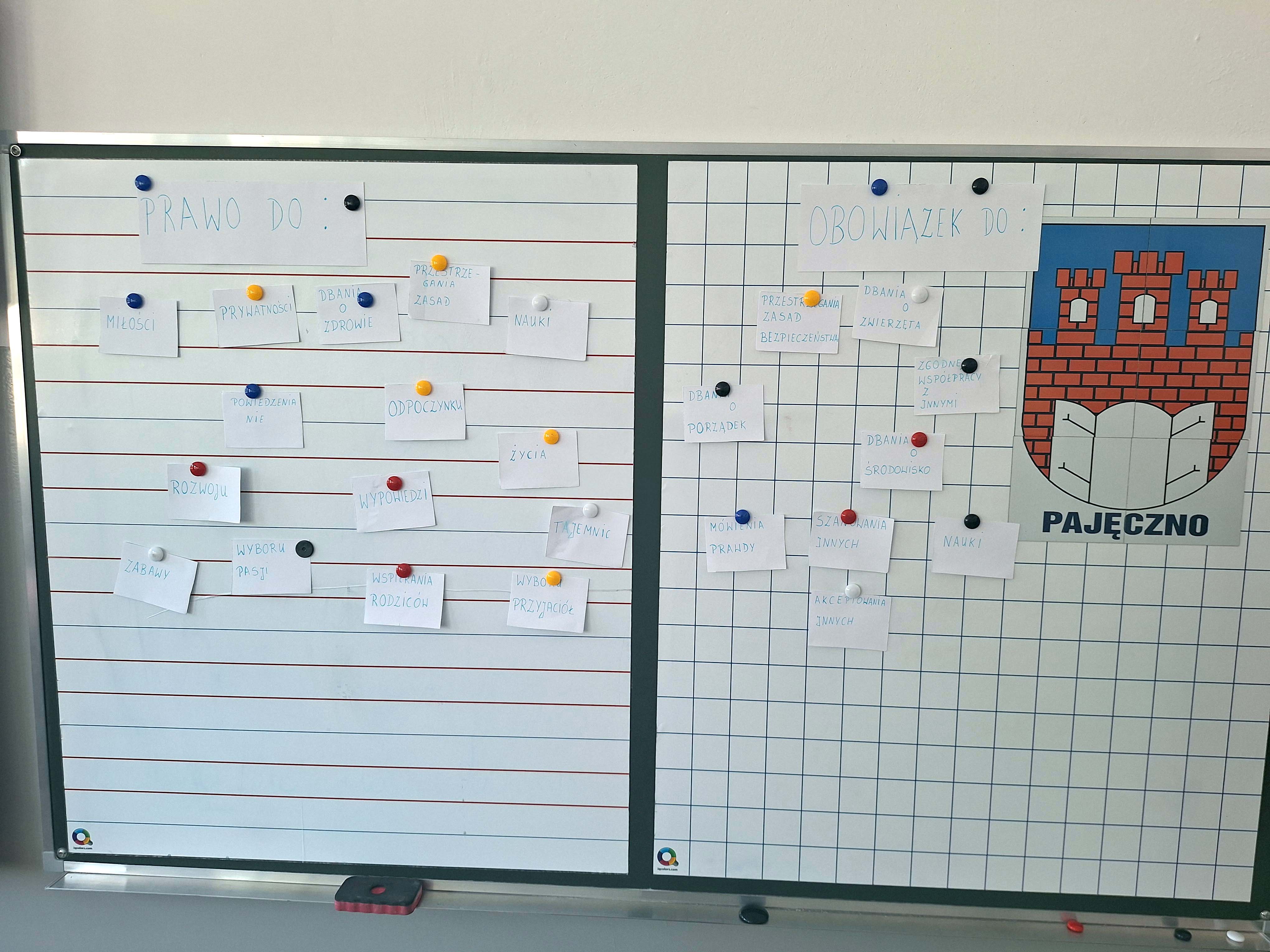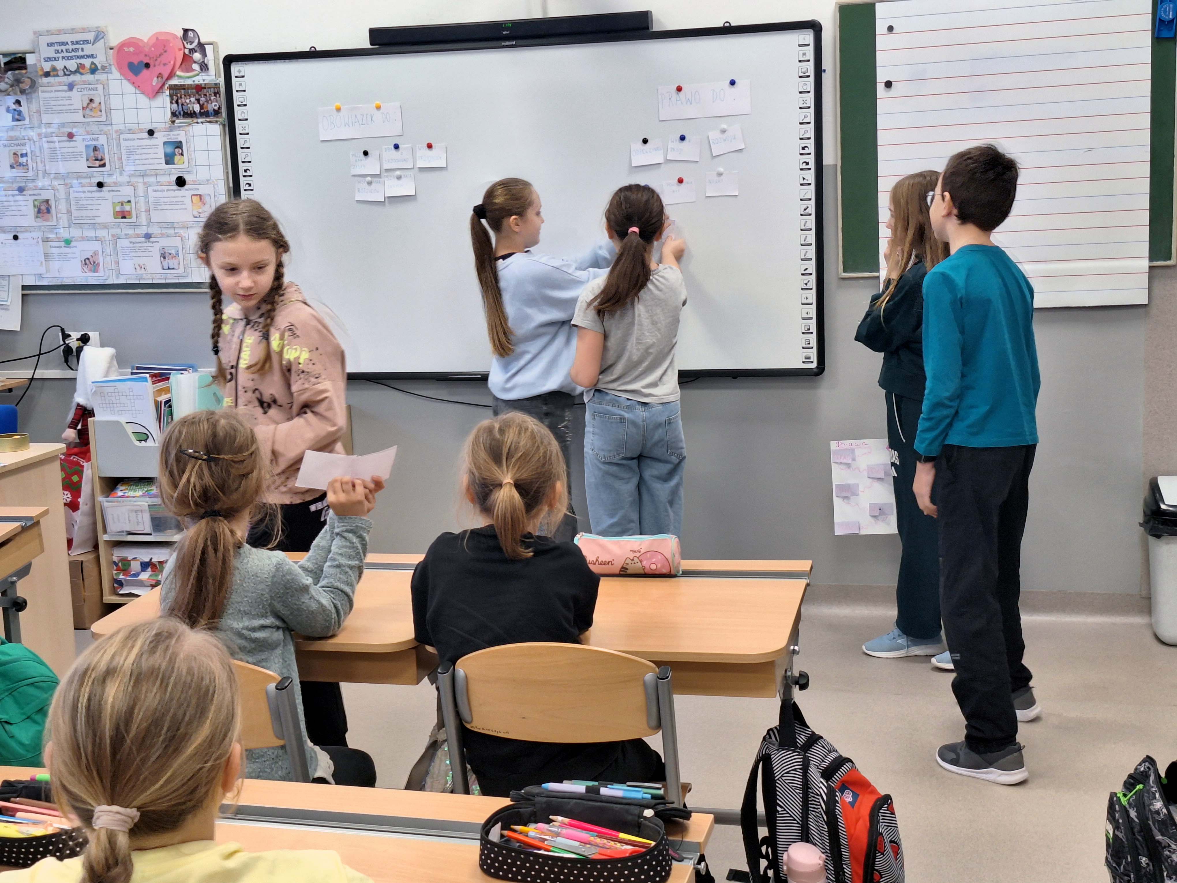 W listopadzie i grudniu uczniowie klasy 5a przeprowadzili zajęcia w klasie 2a i 2b dotyczące praw i obowiązków ucznia. Do zajęć przygotowali się wcześniej wykonując prezentację, plakaty, kalambury oraz quizy. Uczniowie przedstawili swoim młodszym koleżankom i kolegom jakie mają prawa ale również obowiązki zarówno w szkole jak i w domu.