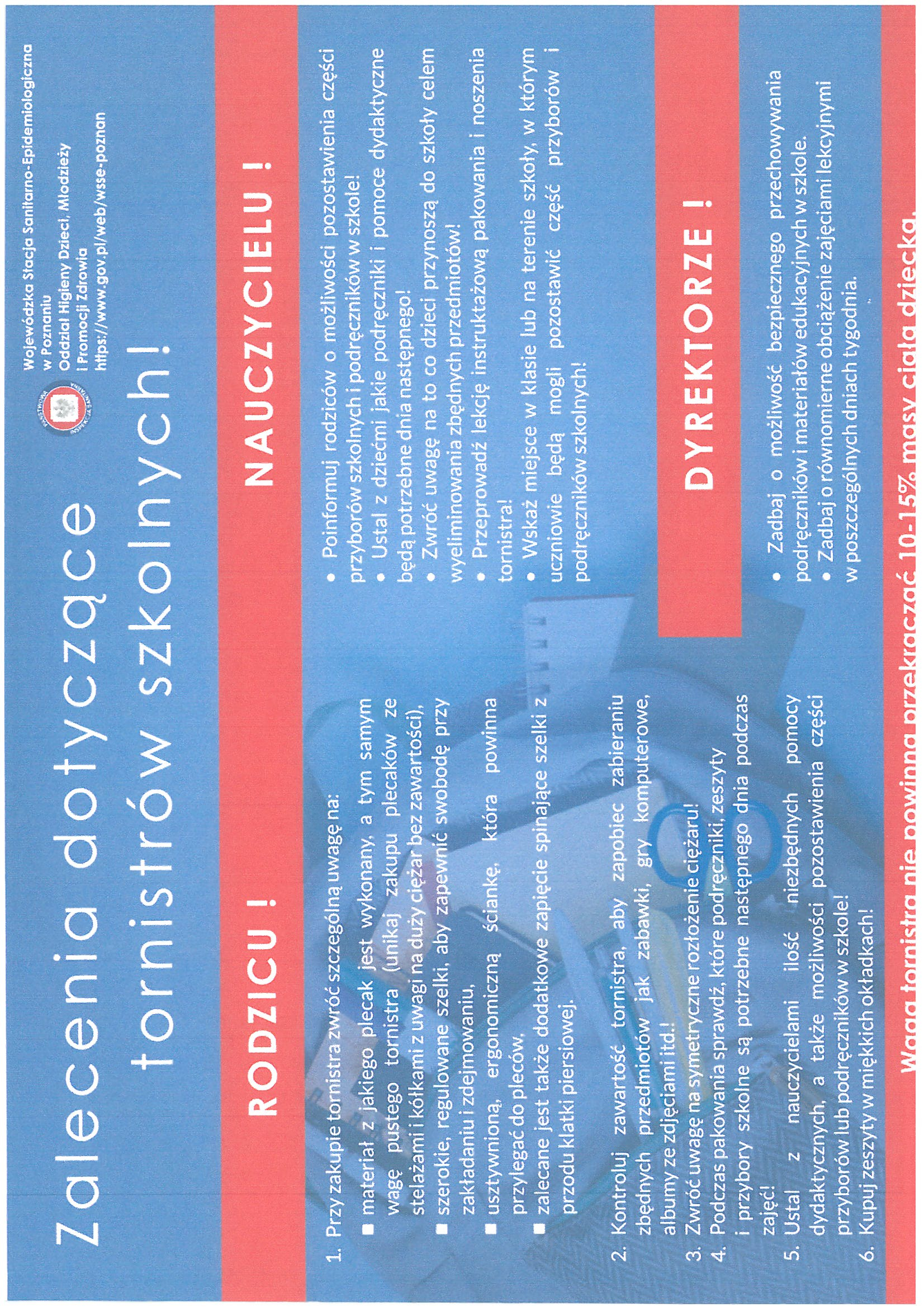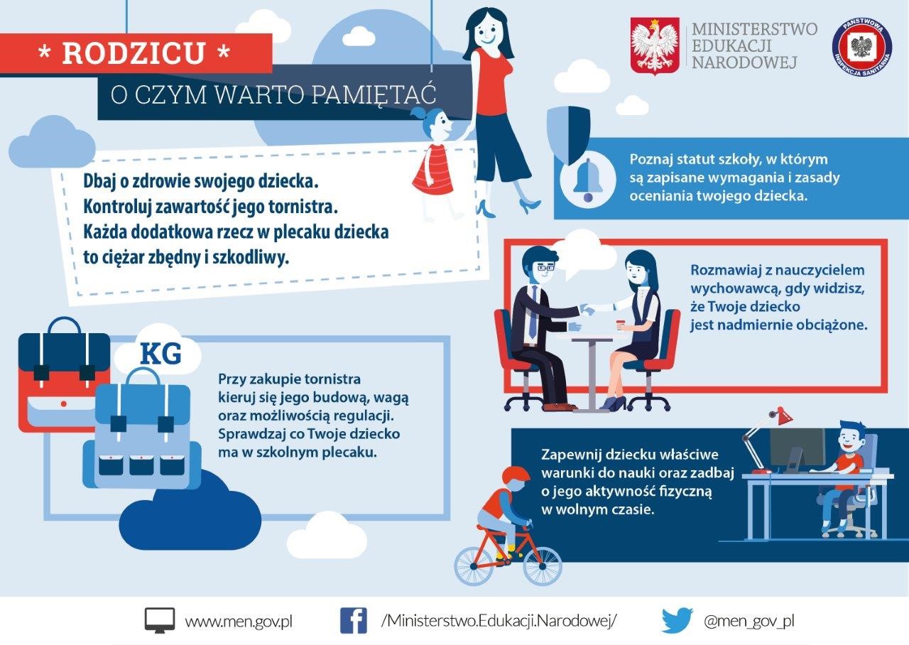 Zalecenia dotyczące tornistrów szkolnych.